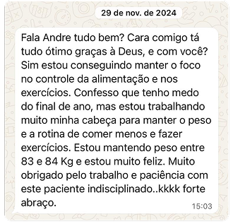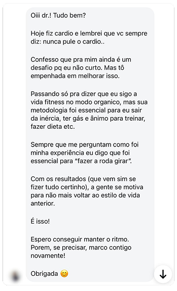 “Perdi bastante gordura e de maneira saudável, um pouco mais de 18Kg de gordura. ”